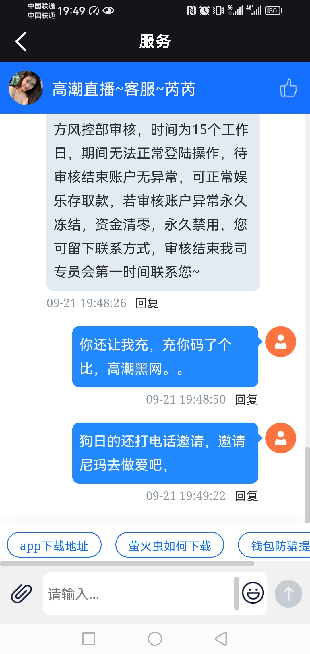 打电话邀请送18,提款让充值任意一笔,充了流水也打了,在提款要手持身份证,银行卡,都提供了,提款一直处理中,最后拉黑。。兄弟们帮你们试了,黄播网靠不住。太黑了
